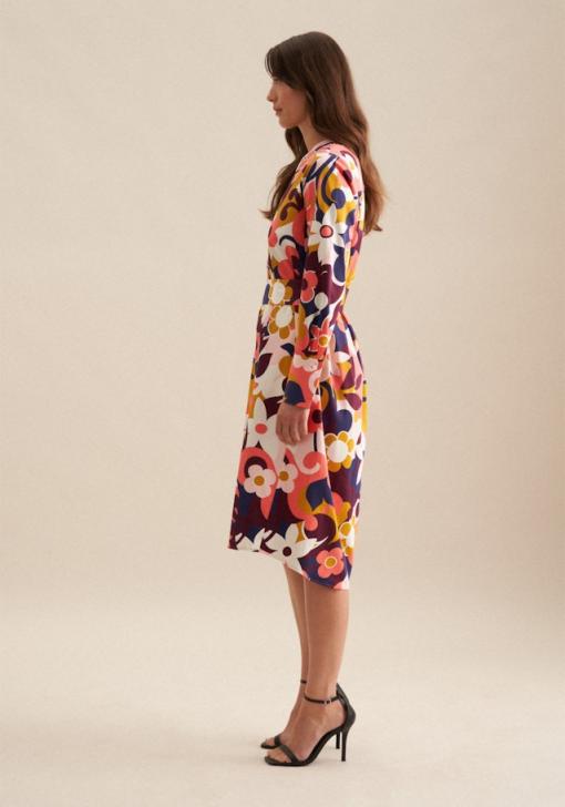Moderner Schnitt: Das Midi-Kleid von Seidensticker aus der „The Statement Prints“ Kollektion erweitert Ihre Garderobe um ein vielseitig einsetzbares Kleidungsstück. Der gewebte Satin ist aus 100% Baumwolle – die perfekte Leinwand für Ihre individuellen Kombinationen. Im klassisch-geraden Regular Schnitt schafft das Kleid höchsten Tragekomfort und liegt weniger eng an. Das charakteristische Druck-Muster ist eine stilvolle Ergänzung. Mit diesem stilvollen Kleid wird jeder Look zu einem absoluten Hingucker. Für Liebhaber von eleganten Looks ist dieses Langarm-Kleid eine sehr gute Wahl. Dank dem Hemdblusenkragen wird der feminin-klassische Charakter besonders hervorgehoben. Als interessantes Detail sind zudem edle Perlmuttknöpfe aufgenäht worden.