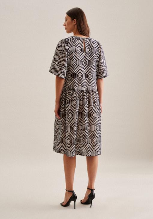 Moderner Schnitt: Das Midi-Kleid von Seidensticker erweitert Ihre Garderobe um einen hochwertigen Look, der den Geist der Zeit trifft. Der gewebte Voile ist aus 100% Baumwolle – die perfekte Leinwand für Ihre ganz eigenen Kombinationen. Die Stickereiraffinierte Stickerei setzt optische Akzente. Modernität und Eleganz vereinen sich im Design dieses Kleids und begeistern die modeaffine Frau. Bei schönem warmen Wetter ist dieses Kurzarm-Kleid exakt die richtige Wahl. Hervorragend herausgearbeitet wird der smarte Charakter durch einen Rundhals-Ausschnitt. Außerdem sind edle Perlmuttknöpfe verwendet worden.